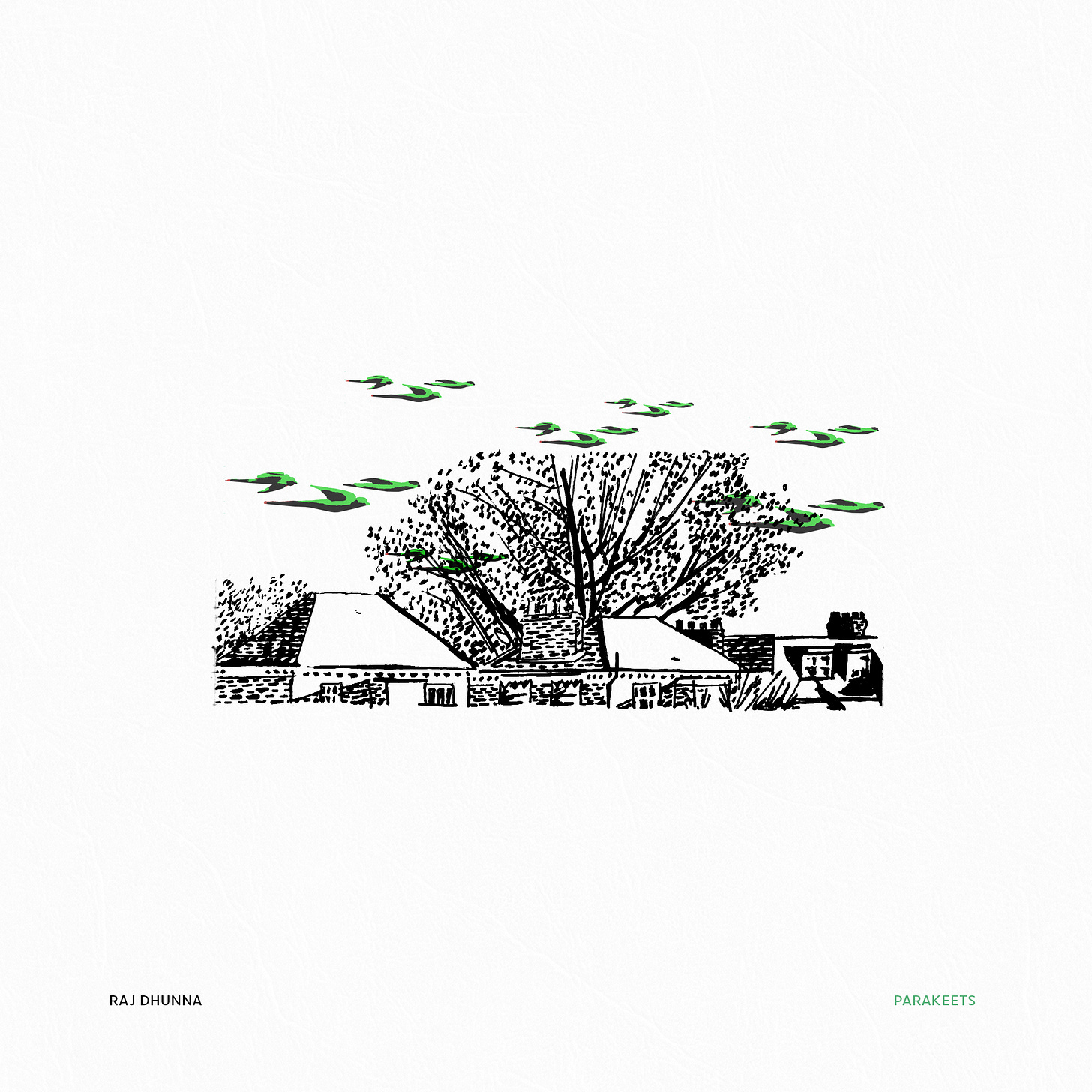 Flocks of ringneck parakeets passed by, squawking in a foreign tongue, lighting up the cloudy sky with their green feathers, nesting in the willow trees drooping over the river.